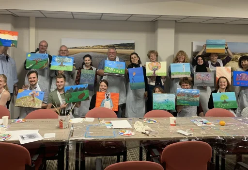 Uiteraard zal bij de workshop schilderen de professionele begeleider ook verschillende tips & tricks geven om een mooi schilderij te maken dat volledig bij jou en je collega’s past! Deze creatieve schilder workshop bieden wij aan vanaf 10 personen en duurt 2,5 uur. Deze workshop kan op elke locatie plaatsvinden, van Amsterdam, Zaandam, Utrecht tot Egmond aan Zee. De prachtige locaties zullen zeker helpen bij het bevorderen van de creativiteit.